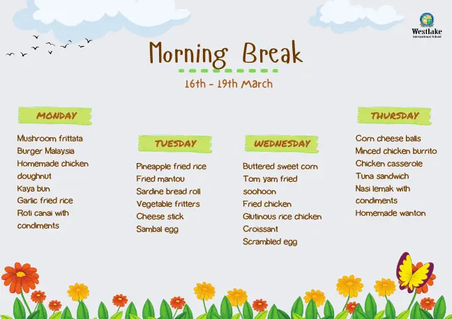 The WIS cafeteria is run by Grand Kampar Hotel using Vircle cashless system. We strive to create interesting menus to suit different palates, bearing in mind the importance of nutritional values that must accompany it. During special seasons like the Raya and Deepavali festivals, special menus are created in commemoration of these events. Being an establishment that seeks to constantly grow and learn, we welcome feedback and suggestions in order to serve our customers better.